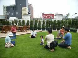 芝生の上で自己紹介 |