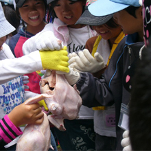| パックに入った鶏肉を見慣れた子どもたちが、丸鶏を見て驚く。 | 浜松東法人会 女性部のみなさんの活動を 詳しく見る→ |