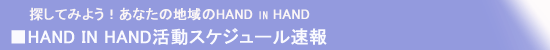HAND in HAND実行委員会には、様々な活動が寄せられています。みんなの住む地域で行われるHAND in HANDの活動に参加してみてはいかがでしょうか? ◆HAND in HAND活動スケジュール |
